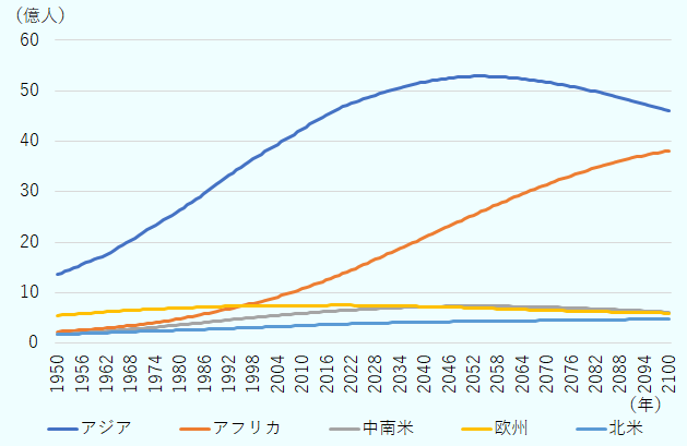 さらに視点を広げると、その背後にあるアフリカ大陸の存在が見えてくる。アフリカは2025年の約15億人から2050年には約25億人へと人口が増加すると予測されており、都市化とIT分野の発展により中間層・富裕層も着実に拡大している。